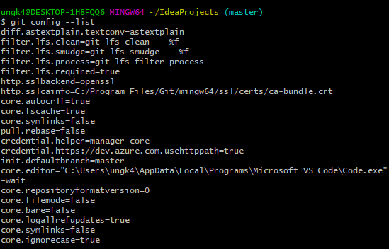 git config --list 를 치면 여러 config 정보가 뜬다.